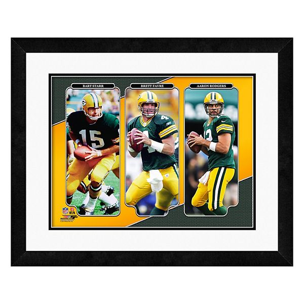 Nfl green bay packers bart starr, brett favre and aaron rodgers, beautifully framed and double matted, 18 x 22 sports photograph brand: